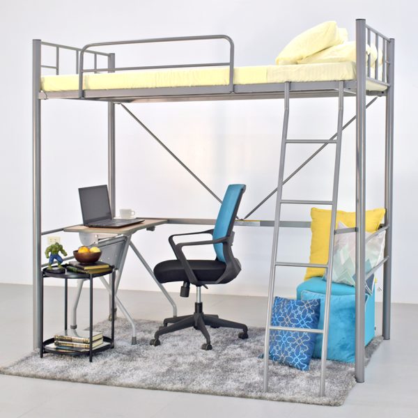 - Versatile single bed, high enough to allow the use of the floor area underneath for various purposes.