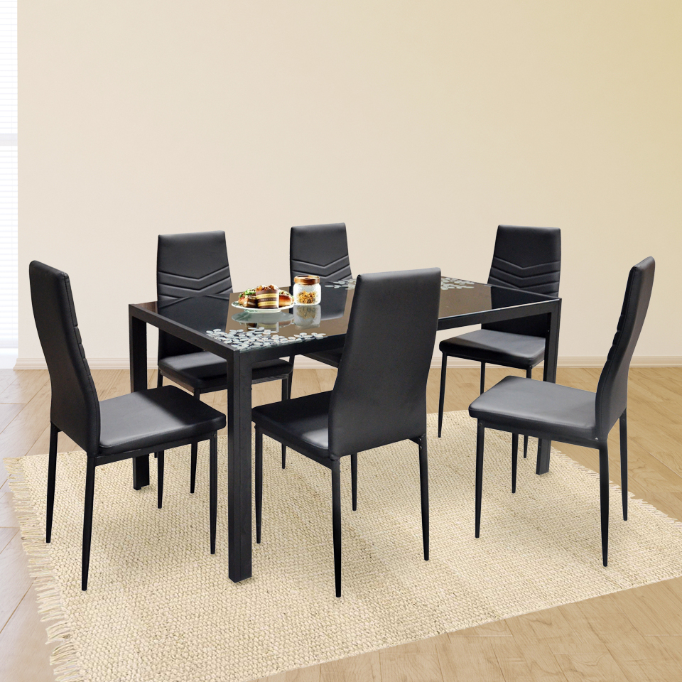 Powder coated metal frame table and chairs in matte black finish for rust and scratch resistant.