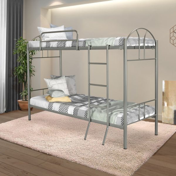 • Folding metal bed with a mattress that easily tucks away when not in use